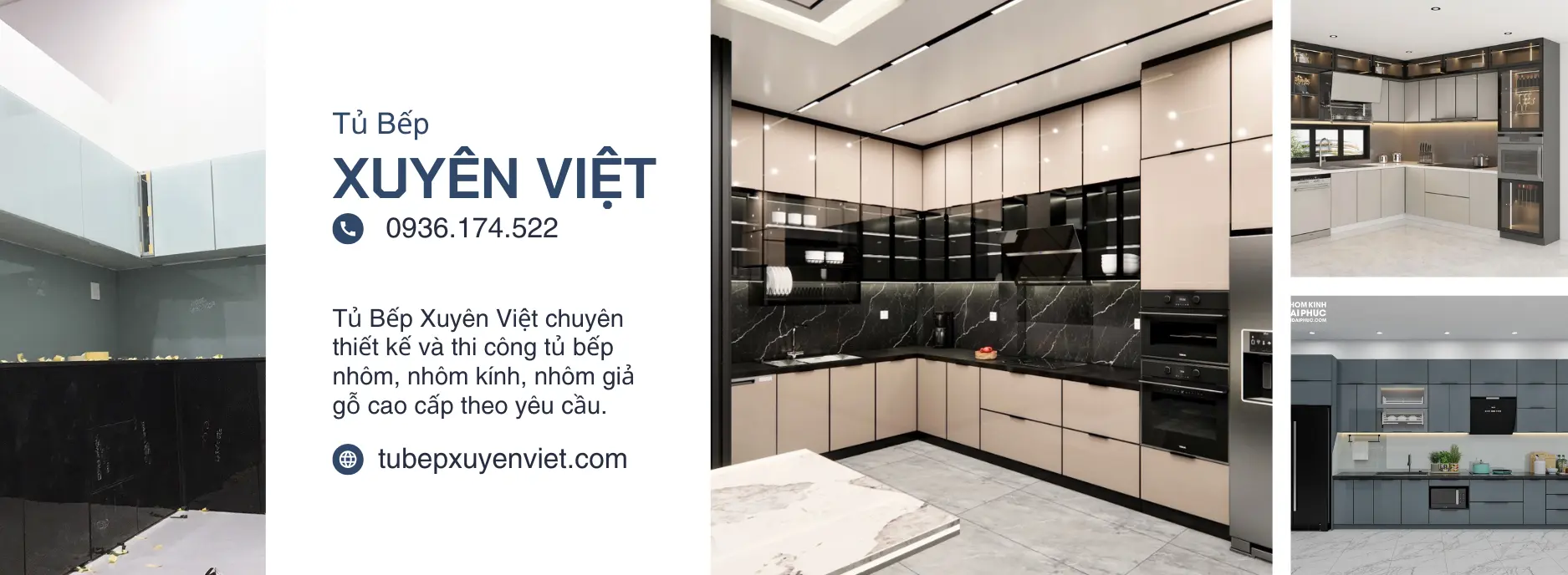 Tủ bếp Xuyên Việt chuyên thiết kế, gia công và thi công tủ bếp nhôm, tủ bếp nhôm kính, tủ bếp giả gỗ và tủ bếp cao cấp theo yêu cầu. Với kinh nghiệm thực tế nhiều năm, chúng tôi mang đến giải pháp không gian bếp hiện đại, tối ưu công năng, thẩm mỹ cao và độ bền vượt trội.