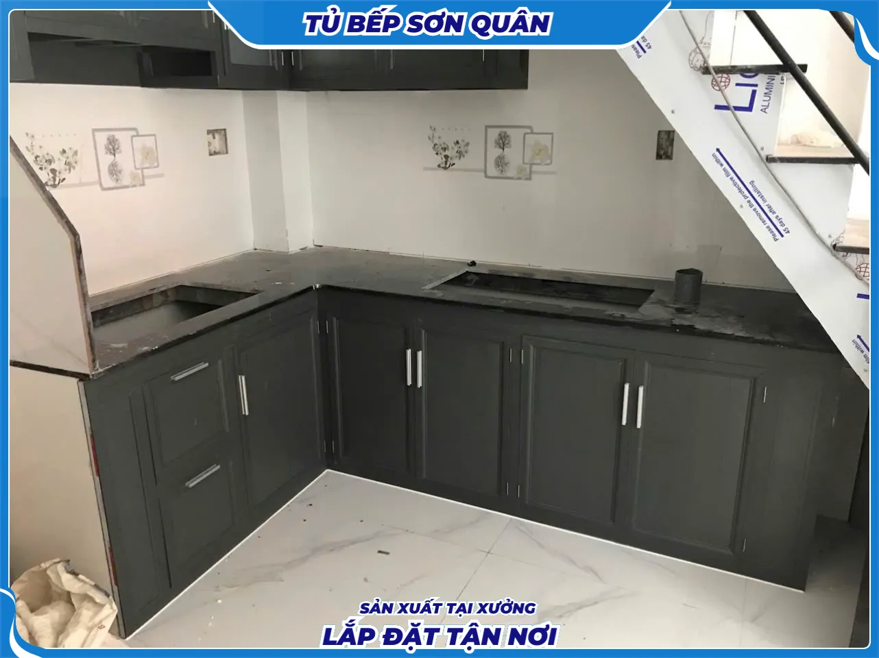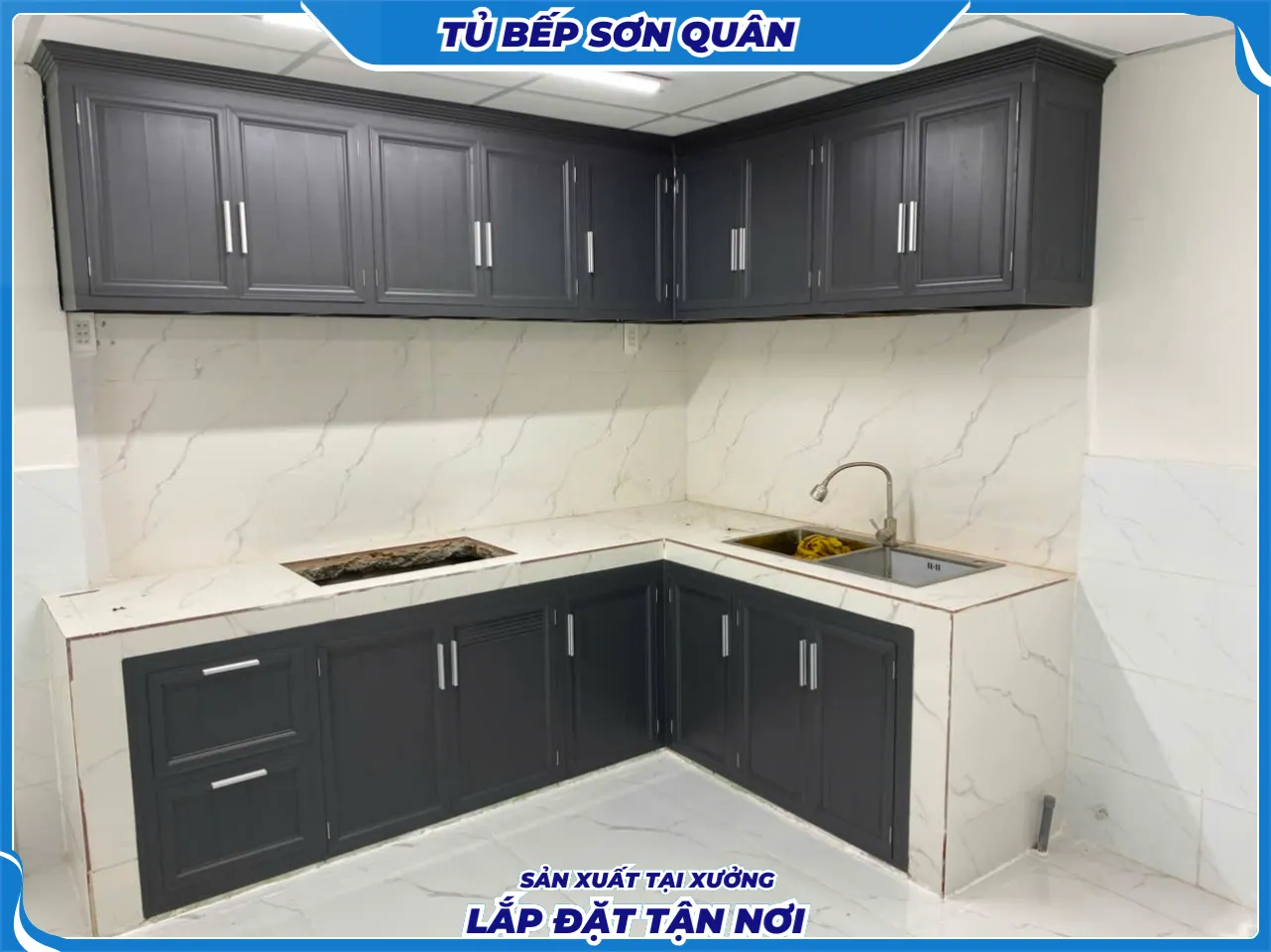 Tủ bếp nhôm Xingfa sơn tĩnh điện: 2.000.000 – 2.500.000 VNĐ/m dài.
