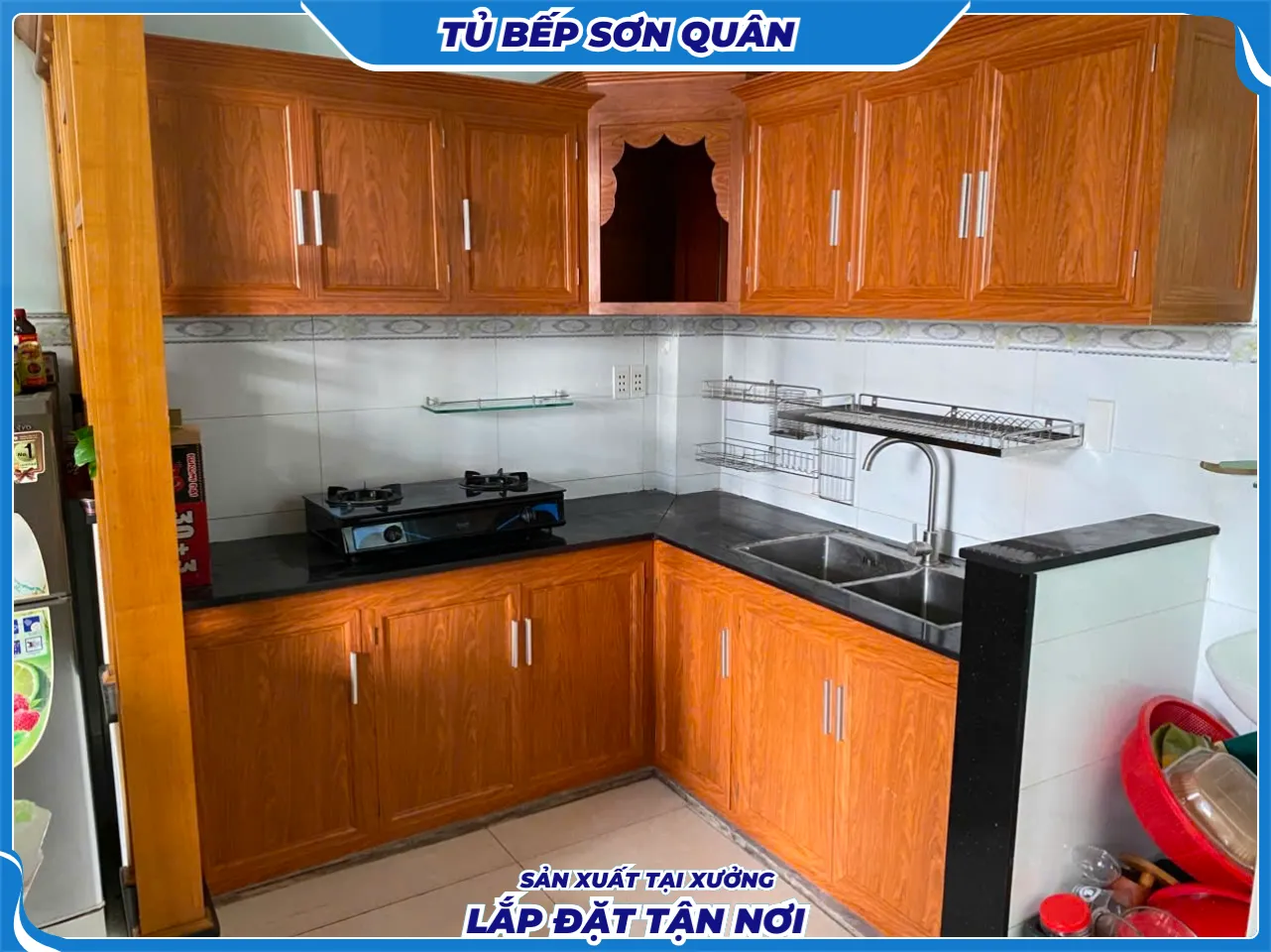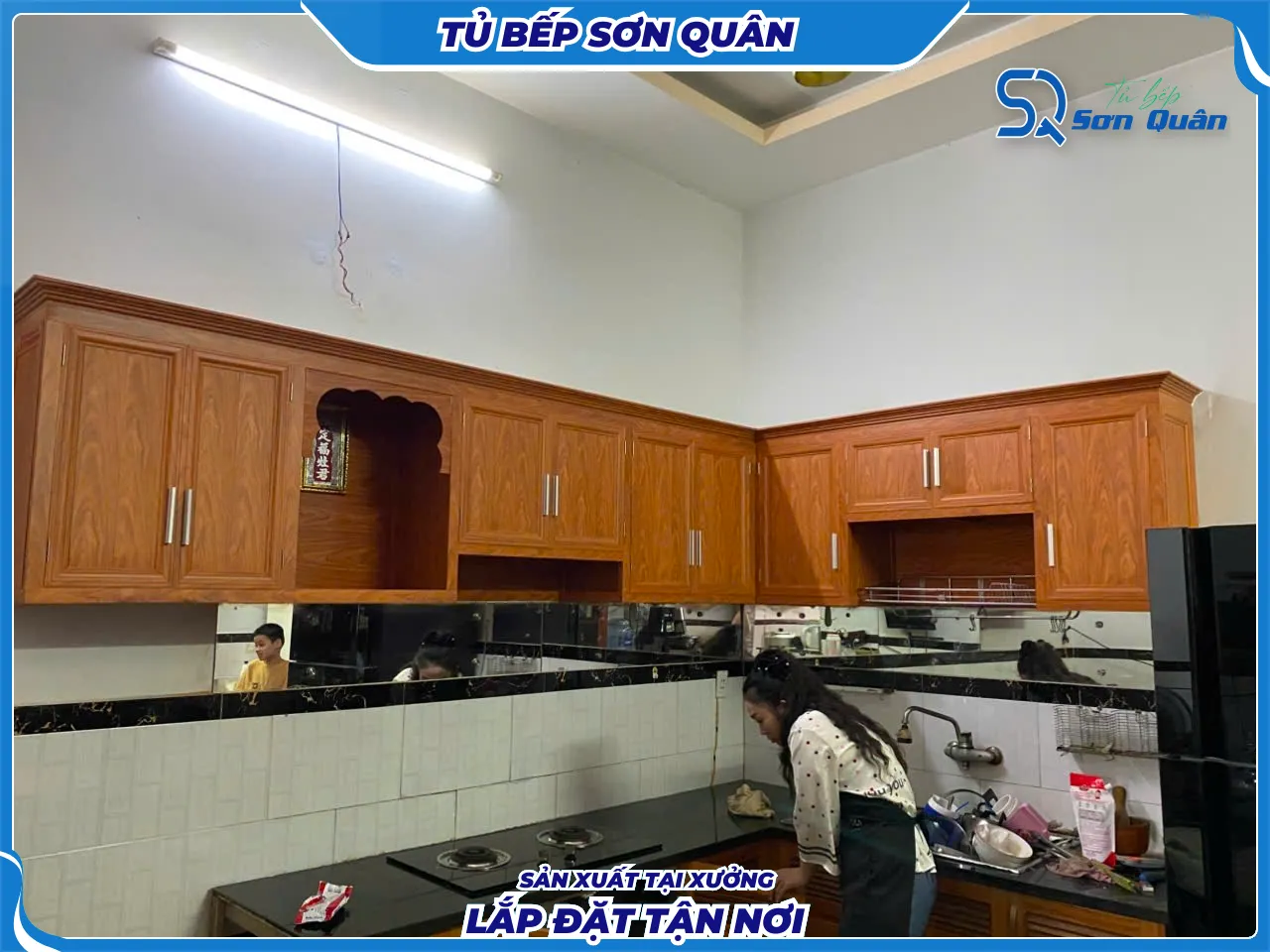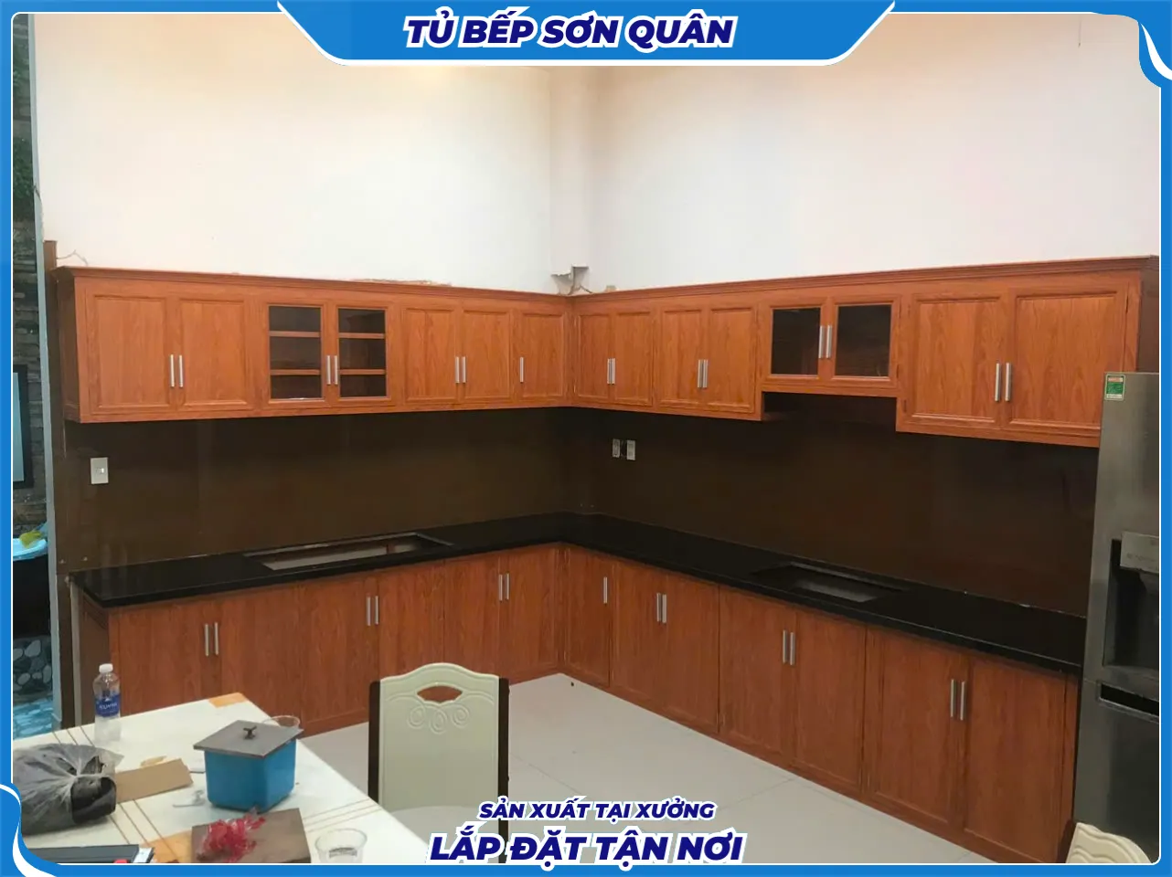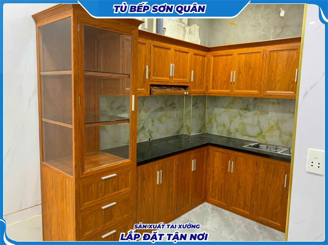 Tủ bếp nhôm Xingfa giả gỗ: 2.200.000 – 2.800.000 VNĐ/m dài.