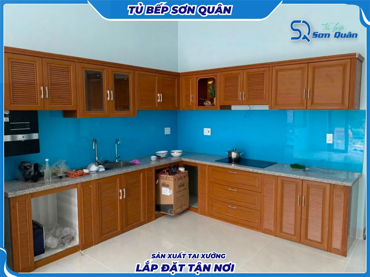 So với tủ gỗ tự nhiên, giá tủ bếp nhôm Xingfa thấp hơn nhiều nhưng vẫn giữ được vẻ sang trọng và độ bền cao.